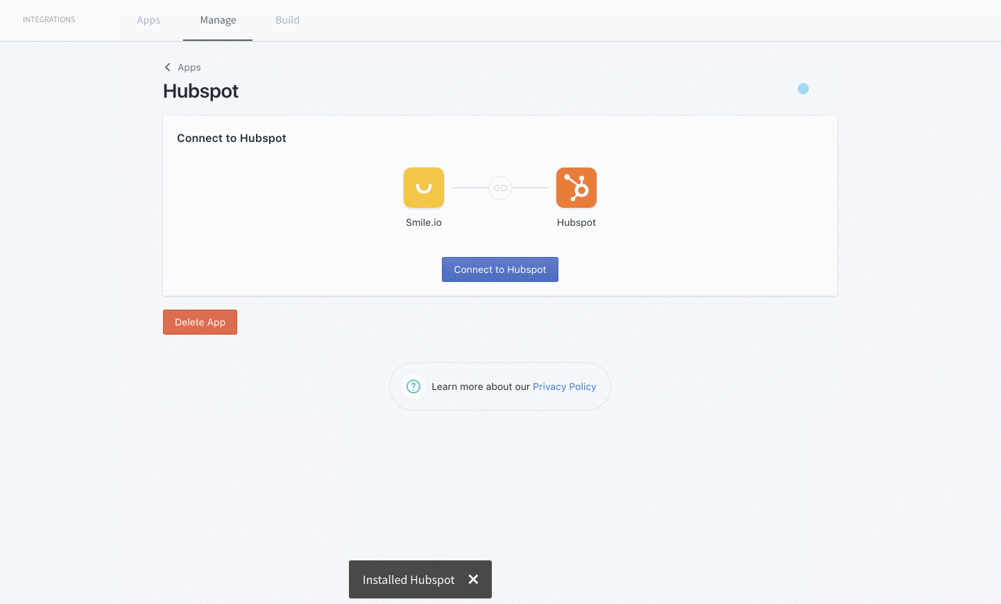 Step 1: Navigate to the Apps section of Smile and select the HubSpot app from the listing.