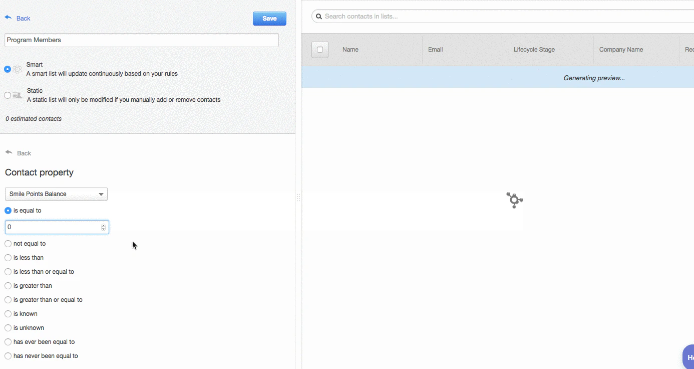 This app allows you to create segments of contacts based on Smile reward information. Segments can be created based on any of the following properties:- Customer points balances