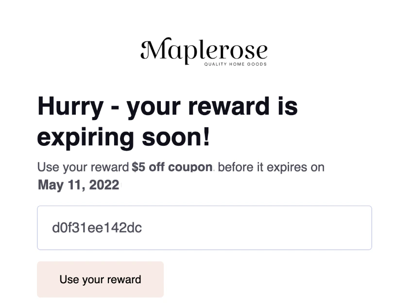 What it is: An email sent to your program members just before their points or rewards are set to expire. ✅ Points & rewards expiry and associated email notifications are only available if you are on specific Smile paid plans