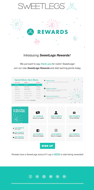 For Smile campaigns, run a Double Points/Double Sign-up Bonus points promotion! For store campaigns, include how many points a customer can earn on promotional products, and incentivize points earning by featuring the rewards program with sales and other store promotions!Call to action