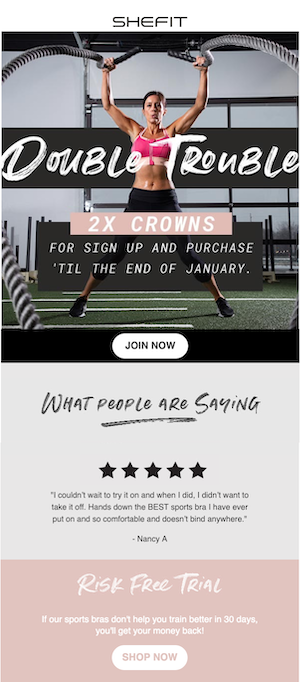 Points balance (if your ESP is integrated with Smile), a message that customers have points to spend!Call to action