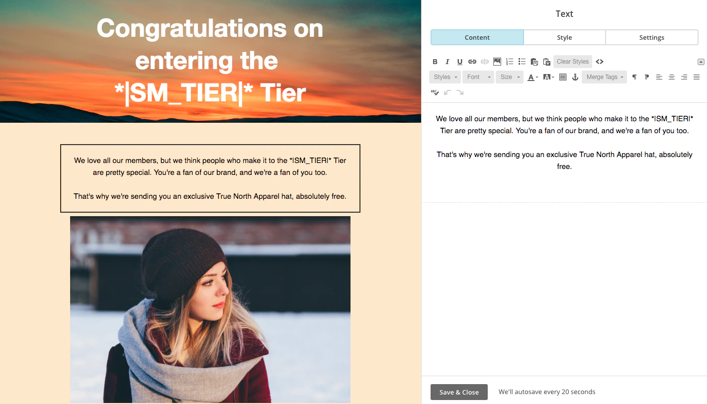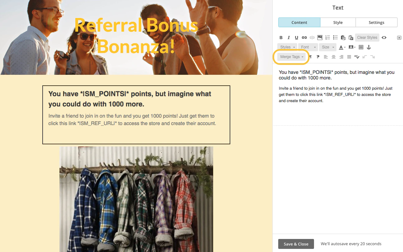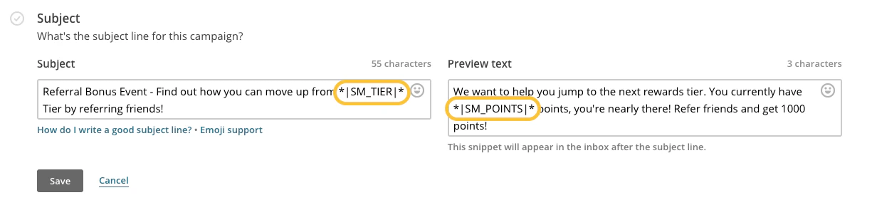 Each of our email service provider Smile Apps allow you to build custom email campaigns based on data pulled directly from your rewards program. This data includes a customer’s:- Current points balance