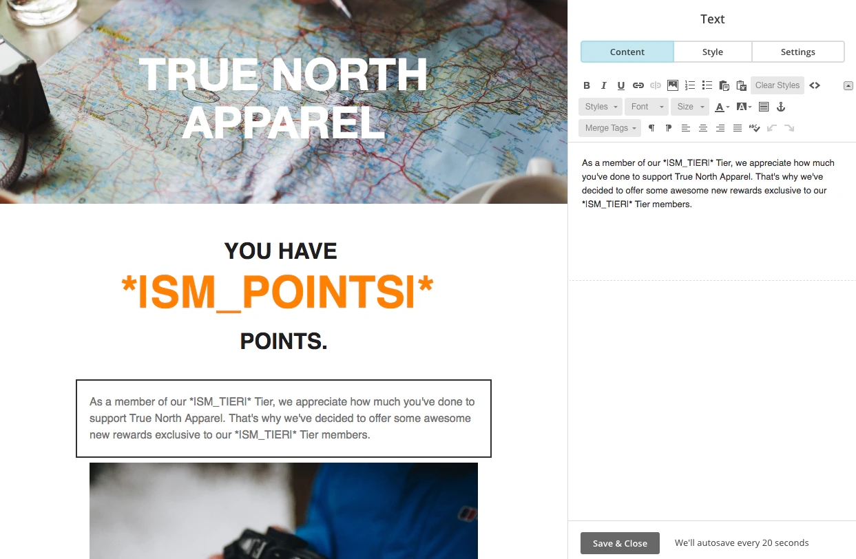 You can go further than simply segmenting your messages by personalizing emails with your rewards data. You can do this by using reward properties. With properties, you can add the following information to any email campaign:- Points balance