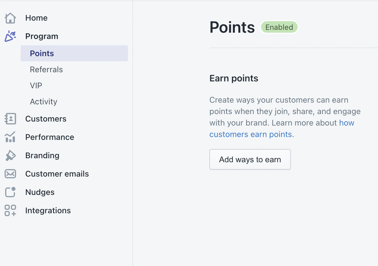 - Log into your Smile.io Dashboard and go to Program>Points>Add ways to earn: